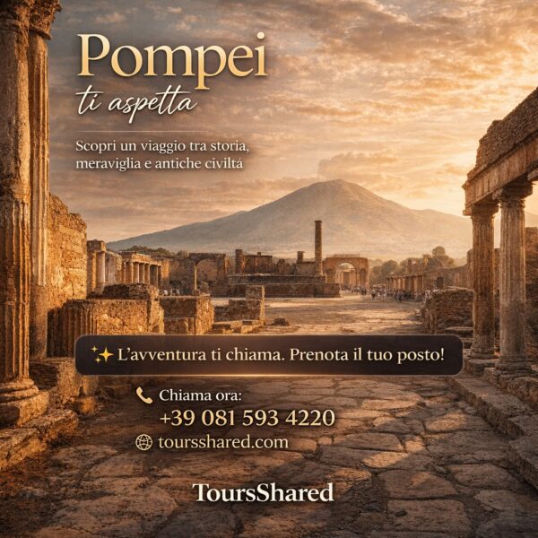 Esplora l’Incredibile con ToursShared: La Tua Porta verso Pompei, Amalfi, Napoli, Capri e i Campi Flegrei Benvenuti in ToursShared, dove ogni viaggio si trasforma in un’esperienza indimenticabile. Immagina di percorrere le antiche strade di Pompei, dove ogni pietra racconta la storia di un’era gloriosa, o di navigare verso la splendida isola di Capri, catturando l’essenza del paradiso mediterraneo. Con noi, ogni tour guidato si trasforma in un’avventura unica, un viaggio che va oltre la semplice visita turistica.
